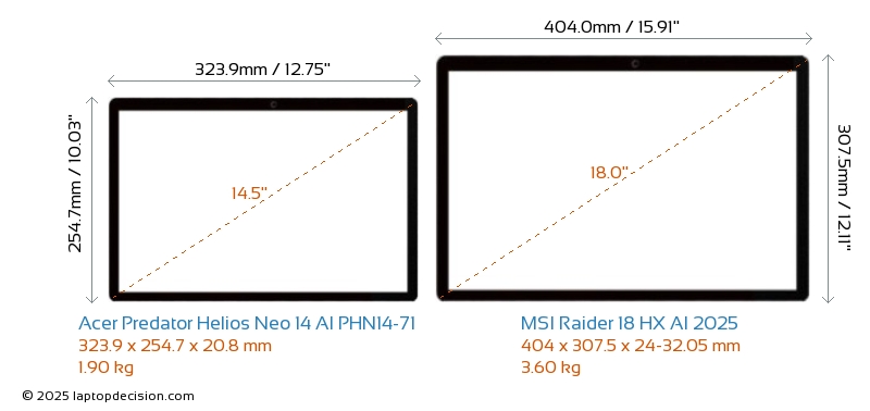 Thunderbolt両方の Predator Helios Neo 14 AI PHN14-71 と Raider 18 HX AI 2025 は Thunderbolt ポートを備えています。 Predator Helios Neo 14 AI PHN14-71 は Thunderbolt 4 を持ち、 Raider 18 HX AI 2025 は Thunderbolt 5 を持っています。