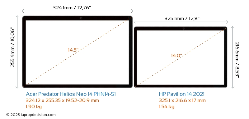 HDMIどちらの Predator Helios Neo 14 PHN14-51 と Pavilion 14 2021 も HDMI ポートを備えています。 Predator Helios Neo 14 PHN14-51 は 1x HDMI 2.1 を提供し、 Pavilion 14 2021 は 1x HDMI 2.0 を提供します。