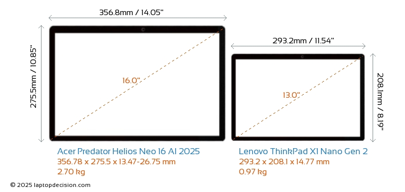 Thunderbolt両方の Predator Helios Neo 16 AI 2025 と ThinkPad X1 Nano Gen 2 は Thunderbolt 4 ポートを備えています。