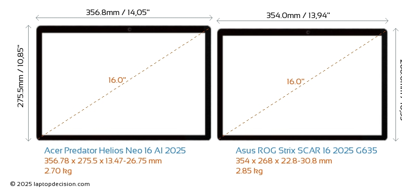 Thunderbolt両方の Predator Helios Neo 16 AI 2025 と ROG Strix SCAR 16 2025 G635 は Thunderbolt ポートを備えています。 Predator Helios Neo 16 AI 2025 は Thunderbolt 4 を持ち、 ROG Strix SCAR 16 2025 G635 は Thunderbolt 5 を持っています。