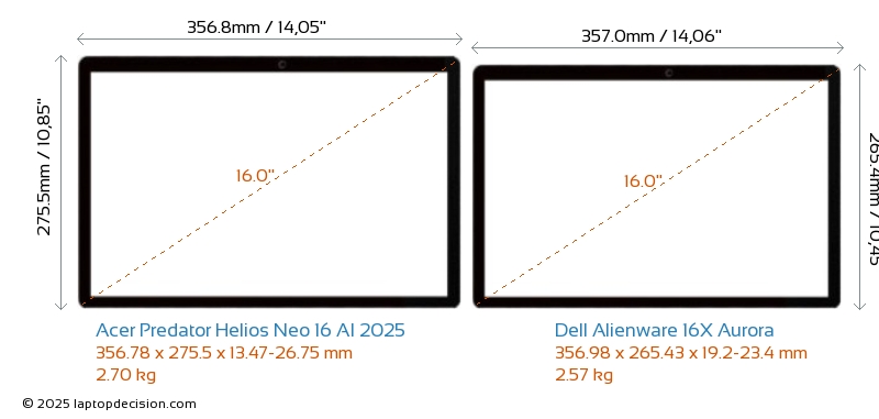 HDMI両方の Predator Helios Neo 16 AI 2025 と Alienware 16X Aurora は、外部モニターに接続するための HDMI ポート (1x HDMI 2.1) を備えています。