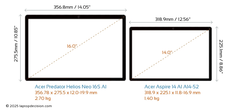 HDMI両方の Predator Helios Neo 16S AI と Aspire 14 AI A14-52 は、外部モニターに接続するための HDMI ポート (1x HDMI 2.1) を備えています。