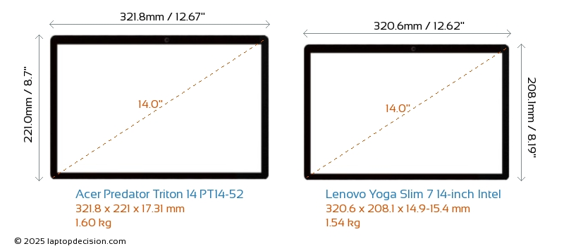 HDMIどちらの Predator Triton 14 PT14-52 と Yoga Slim 7 14-inch Intel も HDMI ポートを備えています。 Predator Triton 14 PT14-52 は 1x HDMI 2.1 を提供し、Yoga Slim 7 14-inch Intel は 1x HDMI 2.0 を提供します。