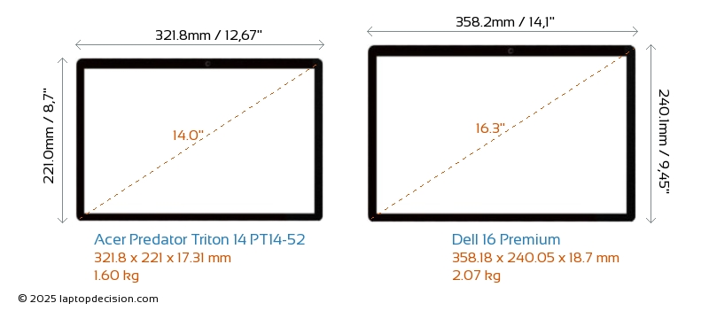 HDMI Predator Triton 14 PT14-52 は、外部モニターに接続するための HDMI ポート (1x HDMI 2.1) を備えています。 16 Premium には HDMI ポートがありません。