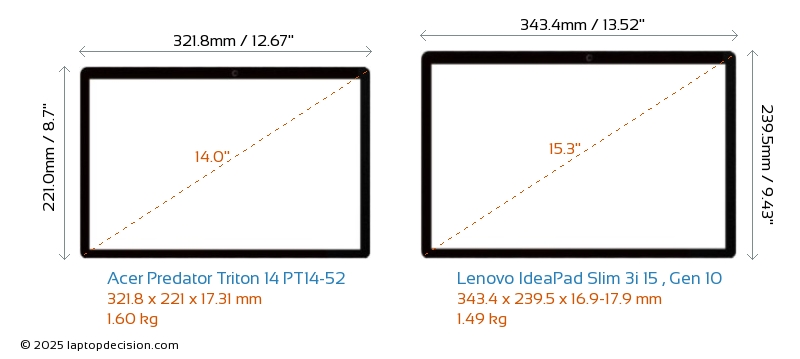 HDMIどちらの Predator Triton 14 PT14-52 と IdeaPad Slim 3i 15 , Gen 10 も HDMI ポートを備えています。 Predator Triton 14 PT14-52 は 1x HDMI 2.1 を提供し、 IdeaPad Slim 3i 15 , Gen 10 は 1x HDMI 1.4 を提供します。
