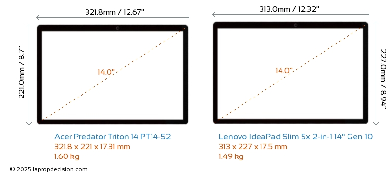 HDMI両方の Predator Triton 14 PT14-52 と IdeaPad Slim 5x 2-in-1 14" Gen 10 は、外部モニターに接続するための HDMI ポート (1x HDMI 2.1) を備えています。