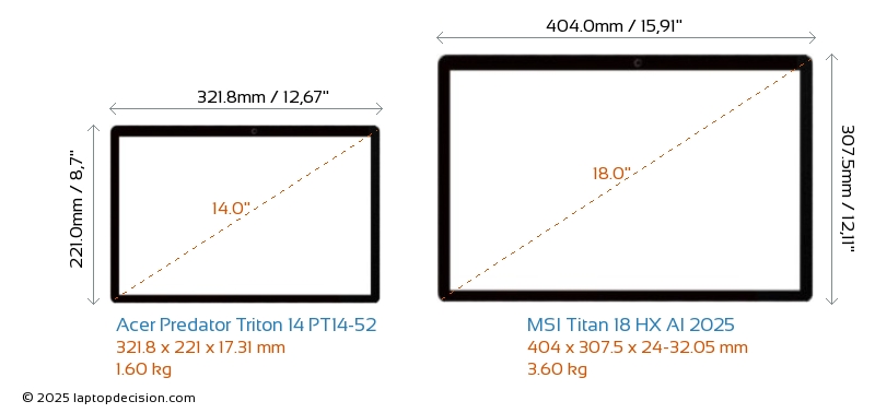 Thunderbolt両方の Predator Triton 14 PT14-52 と Titan 18 HX AI 2025 は Thunderbolt ポートを備えています。 Predator Triton 14 PT14-52 は Thunderbolt 4 を持ち、 Titan 18 HX AI 2025 は Thunderbolt 5 を持っています。