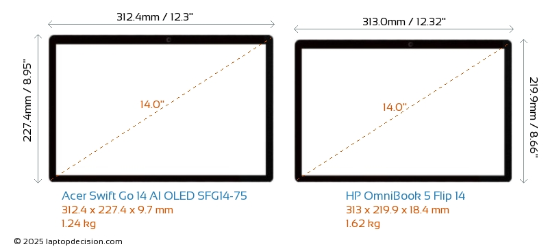 HDMI両方の Swift Go 14 AI OLED SFG14-75 と OmniBook 5 Flip 14 は、外部モニターに接続するための HDMI ポート (1x HDMI 2.1) を備えています。