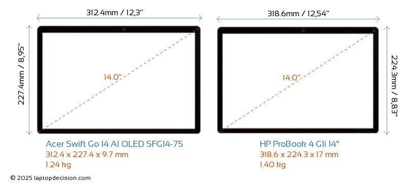 HDMI両方の Swift Go 14 AI OLED SFG14-75 と ProBook 4 G1i 14" は、外部モニターに接続するための HDMI ポート (1x HDMI 2.1) を備えています。
