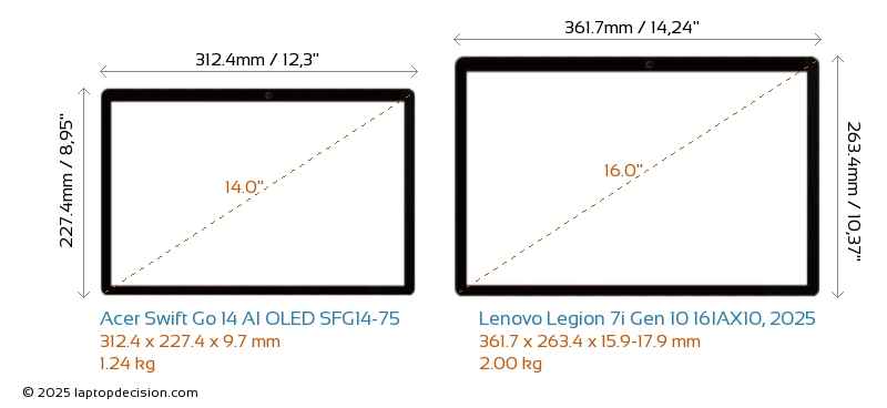 HDMI両方の Swift Go 14 AI OLED SFG14-75 と Legion 7i Gen 10 16IAX10, 2025 は、外部モニターに接続するための HDMI ポート (1x HDMI 2.1) を備えています。