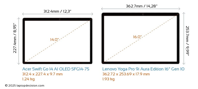 HDMI両方の Swift Go 14 AI OLED SFG14-75 と Yoga Pro 9i Aura Edition 16" Gen 10 は、外部モニターに接続するための HDMI ポート (1x HDMI 2.1) を備えています。