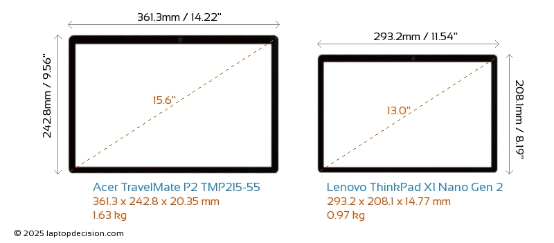 ThunderboltThinkPad X1 Nano Gen 2 は、Thunderbolt 4 ポートを備えています。 TravelMate P2 TMP215-55 には Thunderbolt ポートがありません。