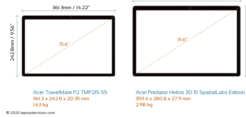 Thunderbolt Predator Helios 3D 15 SpatialLabs Edition は、Thunderbolt 4 ポートを備えています。 TravelMate P2 TMP215-55 には Thunderbolt ポートがありません。
