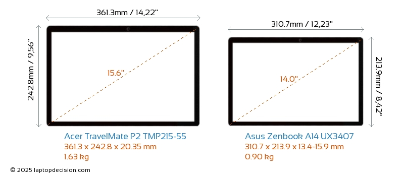Wifi Zenbook A14 UX3407 はより高度な Wi-Fi 規格 v7 を備え、 TravelMate P2 TMP215-55 (v6E) と比べて、より高速で信頼性の高いワイヤレス接続を提供します。