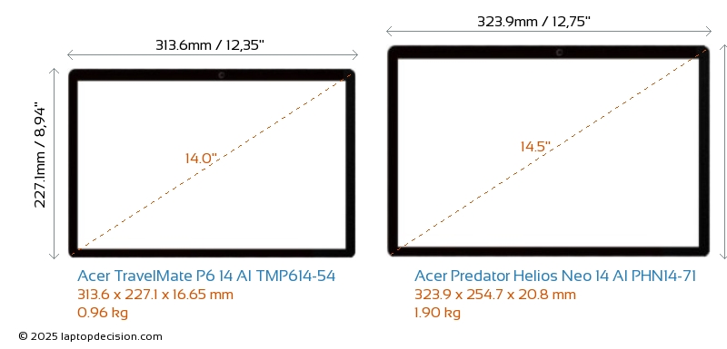 USB両方の TravelMate P6 14 AI TMP614-54 と Predator Helios Neo 14 AI PHN14-71 は、2x USB 3.2 の USB-A ポートを備えています。両方の TravelMate P6 14 AI TMP614-54 と Predator Helios Neo 14 AI PHN14-71 は、USB Type-C ポートを備えています。 TravelMate P6 14 AI TMP614-54 は 2x USB 4.0 USB Type-C ポートを持ち、 Predator Helios Neo 14 AI PHN14-71 は 2x USB 3.2 USB Type-C ポートを持っています。