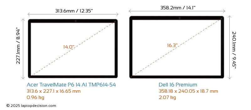 Thunderbolt両方の TravelMate P6 14 AI TMP614-54 と 16 Premium は Thunderbolt ポートを備えています。 TravelMate P6 14 AI TMP614-54 は Thunderbolt 4 を持ち、 16 Premium は Thunderbolt 5 を持っています。
