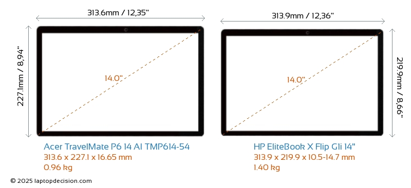 Thunderbolt両方の TravelMate P6 14 AI TMP614-54 と EliteBook X Flip G1i 14" は Thunderbolt 4 ポートを備えています。