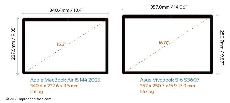 Thunderbolt MacBook Air 15 M4 2025 は、Thunderbolt 4 ポートを備えています。 Vivobook S16 S3607 には Thunderbolt ポートがありません。
