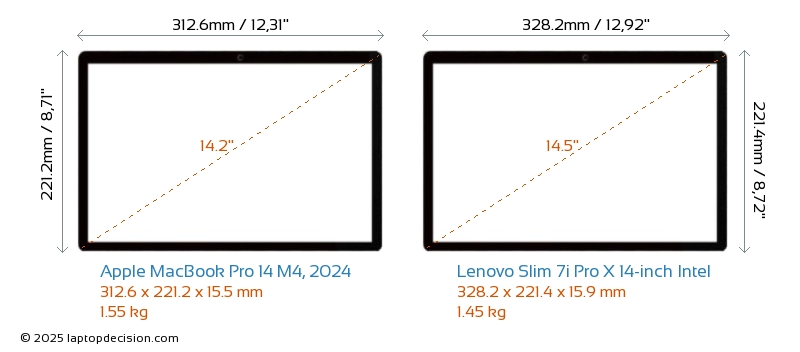 Thunderbolt両方の MacBook Pro 14 M4, 2024 と Slim 7i Pro X 14-inch Intel は Thunderbolt 4 ポートを備えています。