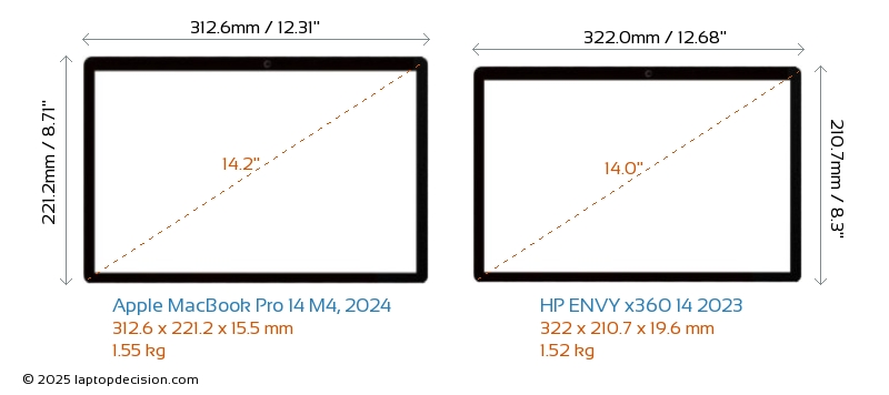HDMI両方の MacBook Pro 14 M4, 2024 と ENVY x360 14 2023 は、外部モニターに接続するための HDMI ポート (1x HDMI 2.1) を備えています。