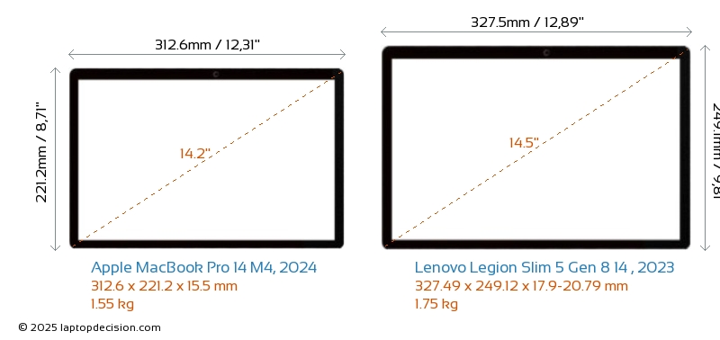 HDMI両方の MacBook Pro 14 M4, 2024 と Legion Slim 5 Gen 8 14 , 2023 は、外部モニターに接続するための HDMI ポート (1x HDMI 2.1) を備えています。