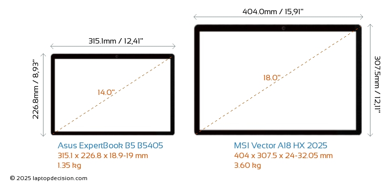 HDMI両方の ExpertBook B5 B5405 と Vector A18 HX 2025 は、外部モニターに接続するための HDMI ポート (1x HDMI 2.1) を備えています。