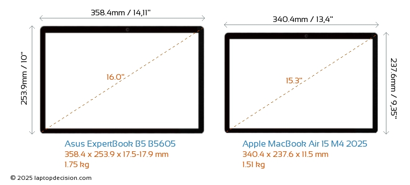 Thunderbolt両方の ExpertBook B5 B5605 と MacBook Air 15 M4 2025 は Thunderbolt 4 ポートを備えています。