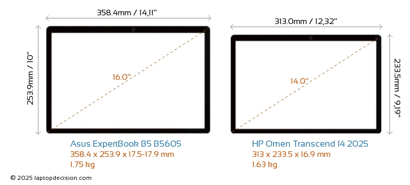 USB両方の ExpertBook B5 B5605 と Omen Transcend 14 2025 は、2x USB 3.2 の USB-A ポートを備えています。両方の ExpertBook B5 B5605 と Omen Transcend 14 2025 は、2x USB 4.0 の USB Type-C ポートを備えています。