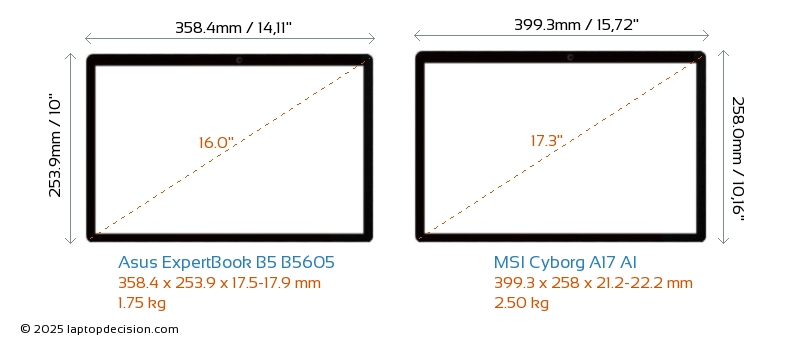 HDMI両方の ExpertBook B5 B5605 と Cyborg A17 AI は、外部モニターに接続するための HDMI ポート (1x HDMI 2.1) を備えています。