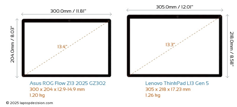 Thunderbolt ThinkPad L13 Gen 5 は、Thunderbolt 4 ポートを備えています。 ROG Flow Z13 2025 GZ302 には Thunderbolt ポートがありません。