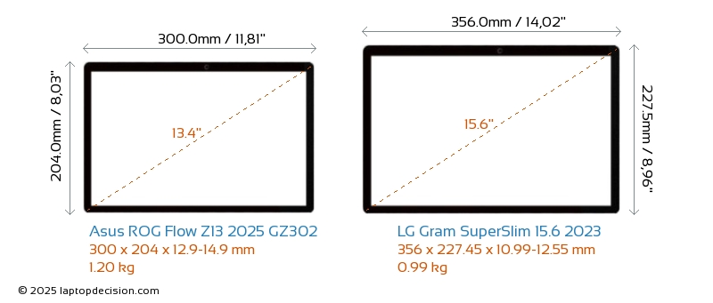 Thunderbolt Gram SuperSlim 15.6 2023 は、Thunderbolt 4 ポートを備えています。 ROG Flow Z13 2025 GZ302 には Thunderbolt ポートがありません。