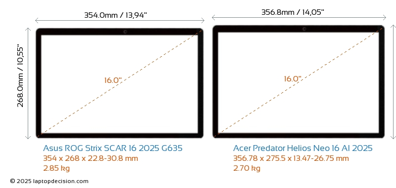 Thunderbolt両方の ROG Strix SCAR 16 2025 G635 と Predator Helios Neo 16 AI 2025 は Thunderbolt ポートを備えています。 ROG Strix SCAR 16 2025 G635 は Thunderbolt 5 を持ち、 Predator Helios Neo 16 AI 2025 は Thunderbolt 4 を持っています。