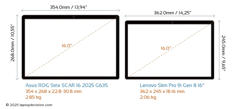 Thunderbolt両方の ROG Strix SCAR 16 2025 G635 と Slim Pro 9i Gen 8 16" は Thunderbolt ポートを備えています。 ROG Strix SCAR 16 2025 G635 は Thunderbolt 5 を持ち、 Slim Pro 9i Gen 8 16" は Thunderbolt 4 を持っています。