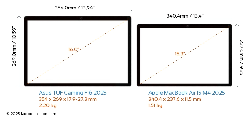 HDMI TUF Gaming F16 2025 は、外部モニターに接続するための HDMI ポート (1x HDMI 2.1) を備えています。 MacBook Air 15 M4 2025 には HDMI ポートがありません。