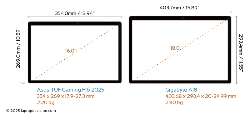 Thunderbolt TUF Gaming F16 2025 は、Thunderbolt 4 ポートを備えています。 A18 には Thunderbolt ポートがありません。