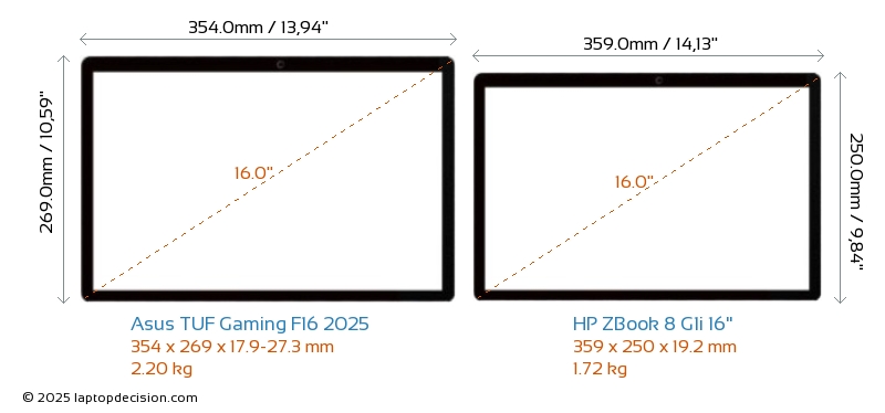 Wifi ZBook 8 G1i 16" はより高度な Wi-Fi 規格 v7 を備え、 TUF Gaming F16 2025 (v6E) と比べて、より高速で信頼性の高いワイヤレス接続を提供します。