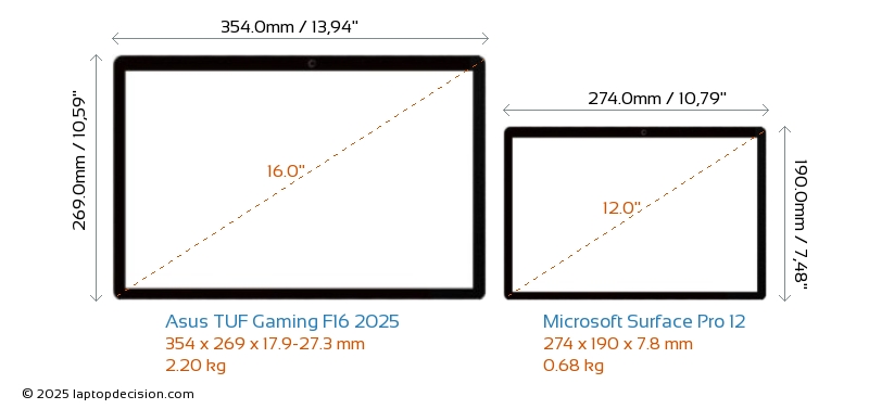 HDMI TUF Gaming F16 2025 は、外部モニターに接続するための HDMI ポート (1x HDMI 2.1) を備えています。 Surface Pro 12 には HDMI ポートがありません。