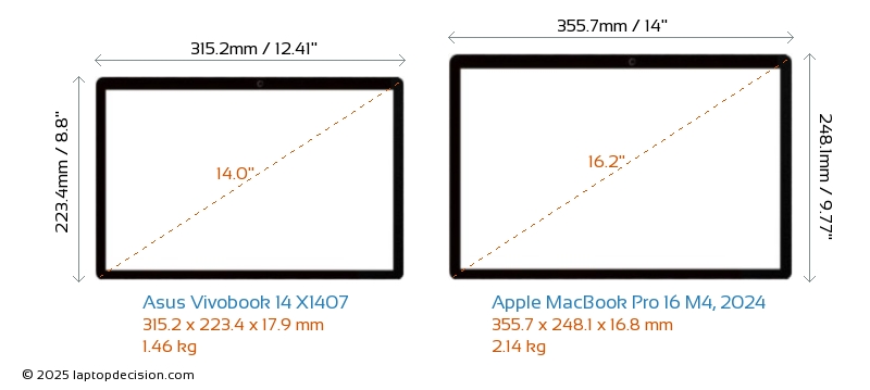 Thunderbolt MacBook Pro 16 M4, 2024 は、Thunderbolt 5 ポートを備えています。 Vivobook 14 X1407 には Thunderbolt ポートがありません。