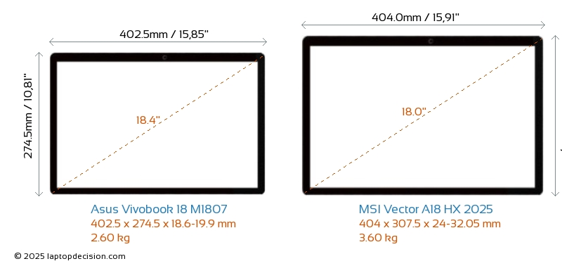 Wifi Vector A18 HX 2025 はより高度な Wi-Fi 規格 v7 を備え、 Vivobook 18 M1807 (v6E) と比べて、より高速で信頼性の高いワイヤレス接続を提供します。