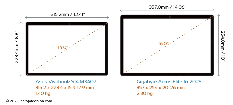 Thunderbolt Aorus Elite 16 2025 は、Thunderbolt 5 ポートを備えています。 Vivobook S14 M3407 には Thunderbolt ポートがありません。
