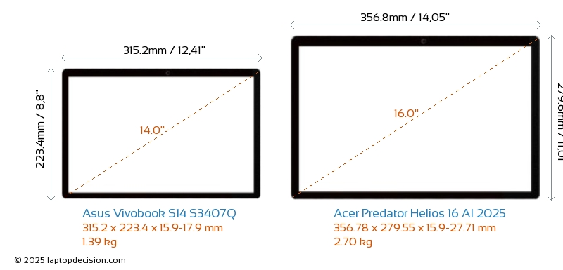 HDMI両方の Vivobook S14 S3407Q と Predator Helios 16 AI 2025 は、外部モニターに接続するための HDMI ポート (1x HDMI 2.1) を備えています。