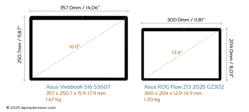 HDMI両方の Vivobook S16 S3607 と ROG Flow Z13 2025 GZ302 は、外部モニターに接続するための HDMI ポート (1x HDMI 2.1) を備えています。