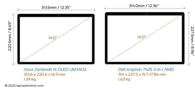 HDMIどちらの Zenbook 14 OLED UM3402 と Inspiron 7425 2-in-1 AMD も HDMI ポートを備えています。 Zenbook 14 OLED UM3402 は 1x HDMI 2.1 を提供し、Inspiron 7425 2-in-1 AMD は 1x HDMI 1.4 を提供します。