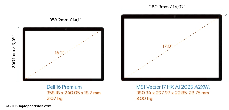HDMI Vector 17 HX AI 2025 A2XWJ は、外部モニターに接続するための HDMI ポート (1x HDMI 2.1) を備えています。 16 Premium には HDMI ポートがありません。