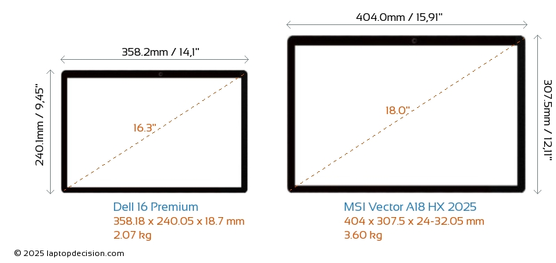 HDMI Vector A18 HX 2025 は、外部モニターに接続するための HDMI ポート (1x HDMI 2.1) を備えています。 16 Premium には HDMI ポートがありません。