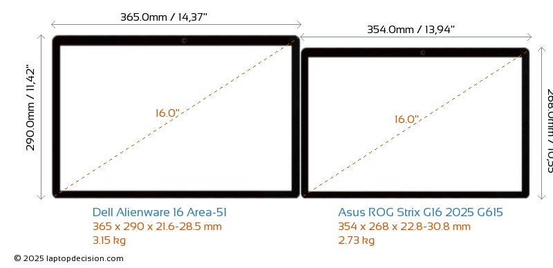 USB両方の Alienware 16 Area-51 と ROG Strix G16 2025 G615 は、3x USB 3.2 の USB-A ポートを備えています。両方の Alienware 16 Area-51 と ROG Strix G16 2025 G615 は、2x USB 4.0 の USB Type-C ポートを備えています。