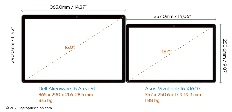 HDMI両方の Alienware 16 Area-51 と Vivobook 16 X1607 は、外部モニターに接続するための HDMI ポート (1x HDMI 2.1) を備えています。