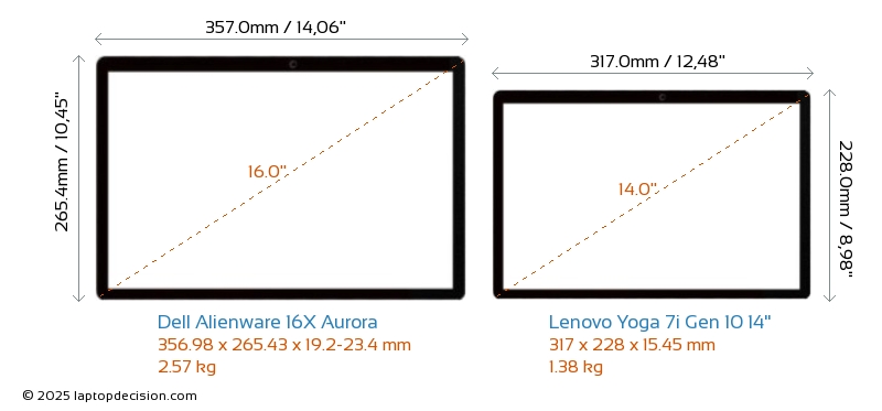 HDMIどちらの Alienware 16X Aurora と Yoga 7i Gen 10 14" も HDMI ポートを備えています。 Alienware 16X Aurora は 1x HDMI 2.1 を提供し、 Yoga 7i Gen 10 14" は 1x HDMI 1.4 を提供します。