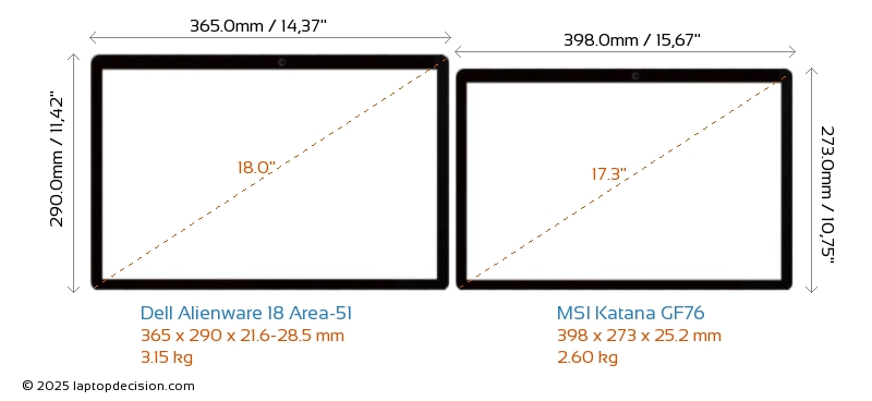 HDMIどちらの Alienware 18 Area-51 と Katana GF76 も HDMI ポートを備えています。 Alienware 18 Area-51 は 1x HDMI 2.1 を提供し、Katana GF76 は 1x HDMI 2.0 を提供します。