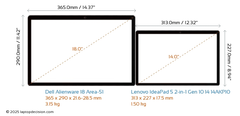 Thunderbolt Alienware 18 Area-51 は、Thunderbolt 5 ポートを備えています。 IdeaPad 5 2-in-1 Gen 10 14 14AKP10 には Thunderbolt ポートがありません。